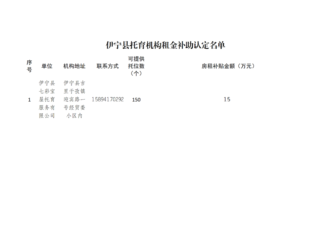 關(guān)于伊寧縣享受托育機構(gòu)租金補助托育機構(gòu)的公示