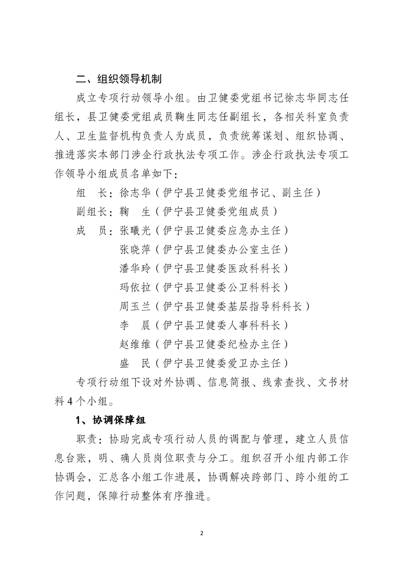 伊寧縣衛生健康委員會涉企行政執法專項行動工作機制